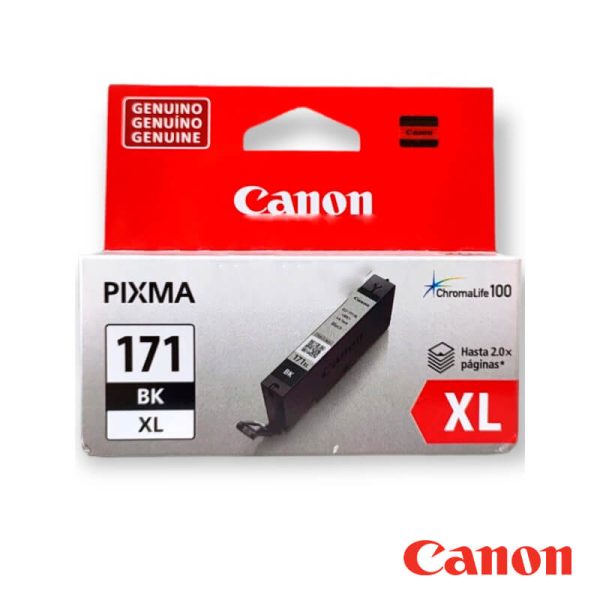 Los cartuchos de Tinta Canon CLI-171XL Negro de alta Capacidad, cuentan con altos estándares de calidad de impresión y al mejor precio del mercado, recuerda que un Cartucho que se encuentra en venta de Tinta Canon original cuentan con un Holograma original fabricada especialmente para reconocer la originalidad del producto y cuenta con un chip original fabricada especialmente para contabilizar la cantidad de impresión que usted realice en su impresora.